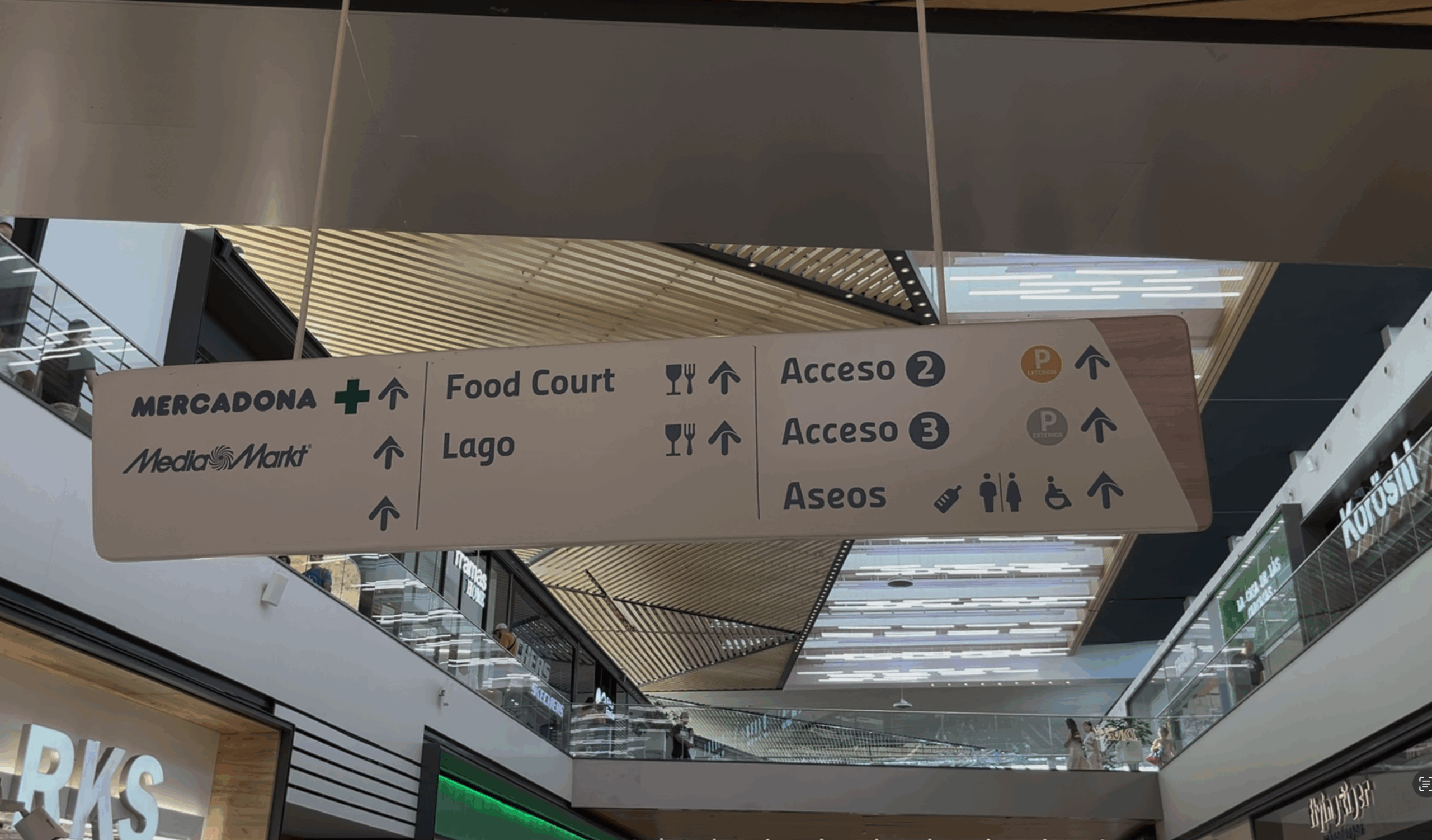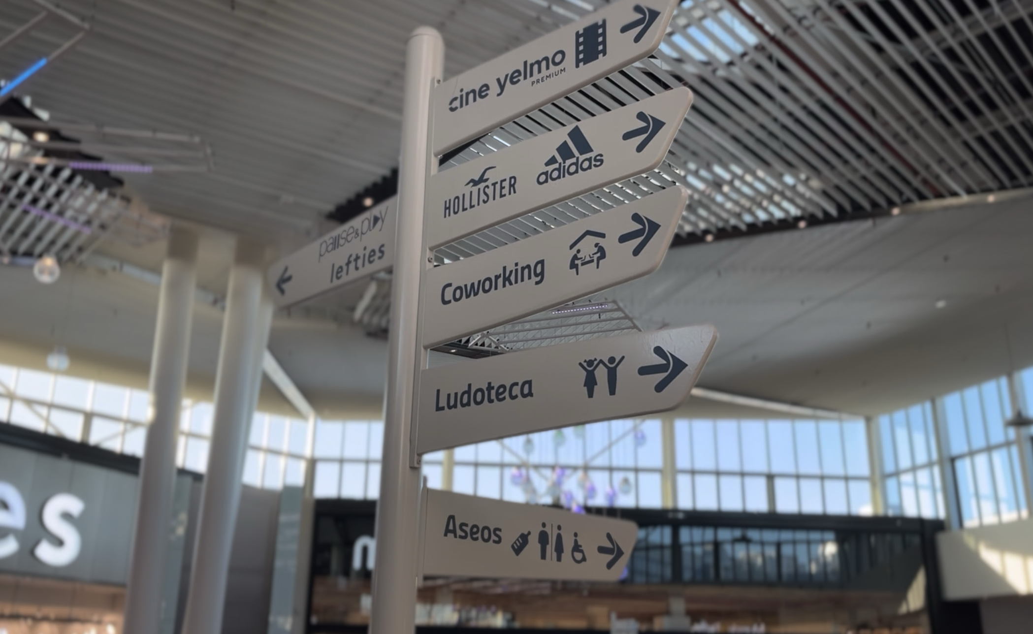 Distintos tipos de señalizaciones ubicados por todo el interior y exterior del centro comercial.