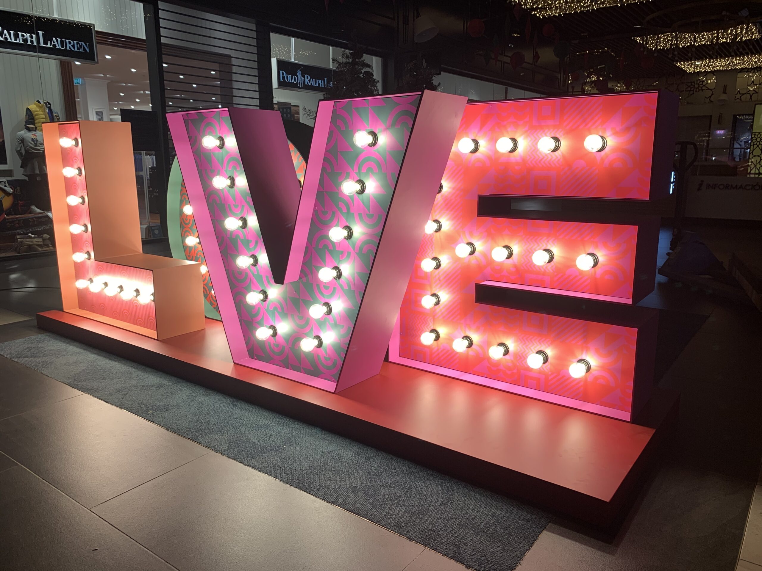 Rótulo corpóreo de chapa, pintura, rotulación en frente e iluminación para centros en Sevilla, Noruega y Suecia.